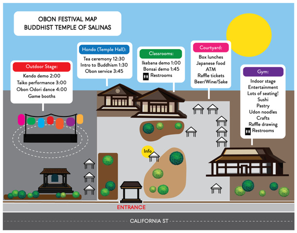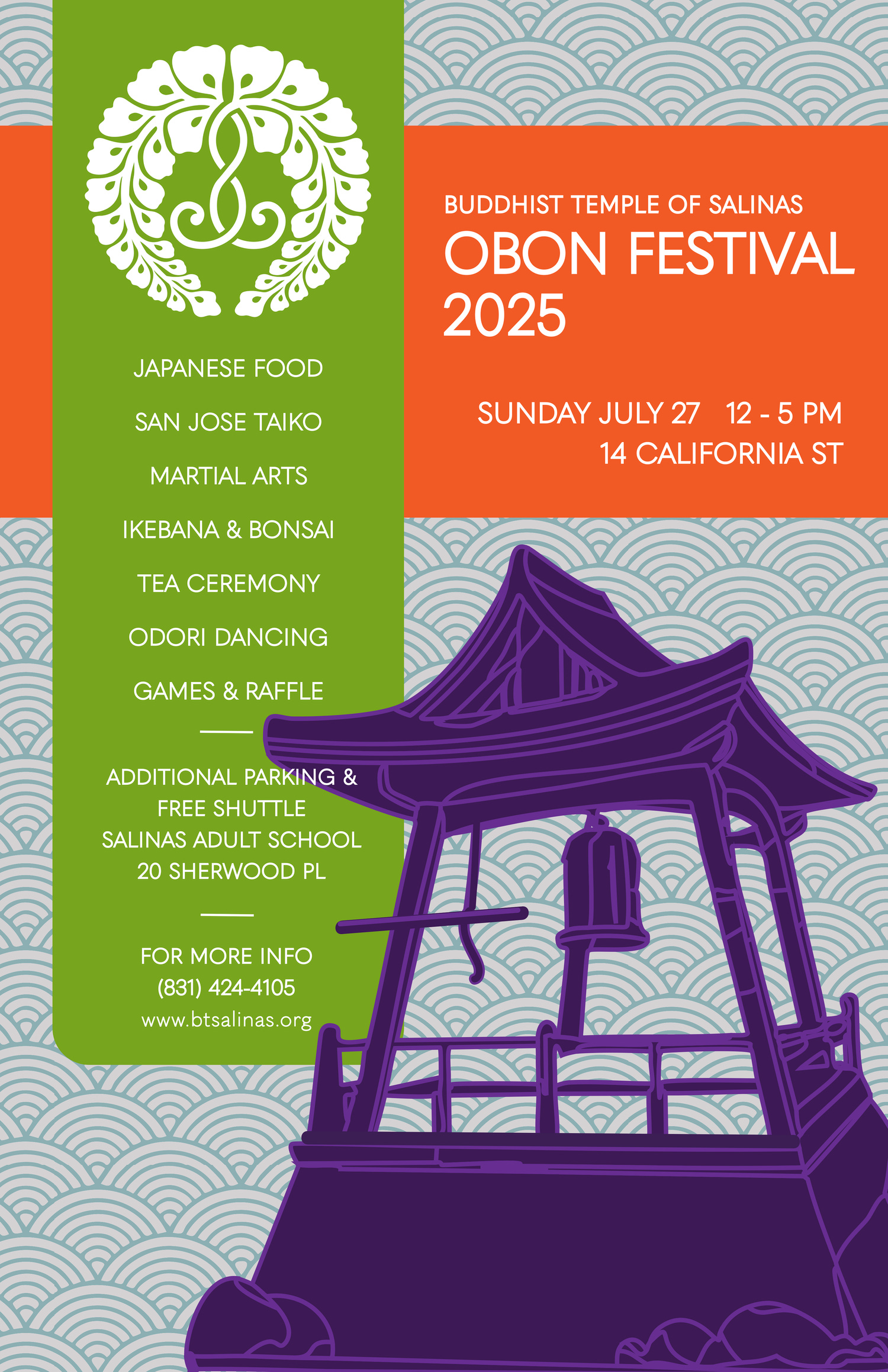 OBON Festival: Sat., July 27, 12 noon - 5:00 pm, Buddhist Temple of Salinas, 14 California St., Salinas.